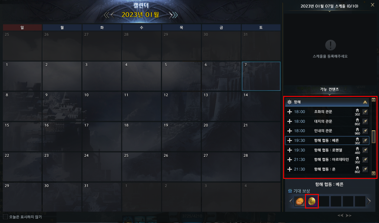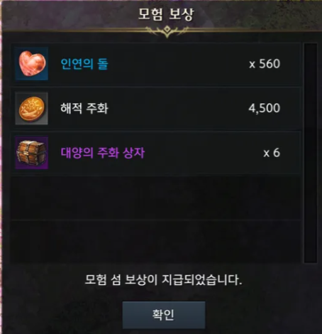 해당 컨텐츠를 수행하면 대륙에 맞는 대양의 주화를 획득이 가능하다.