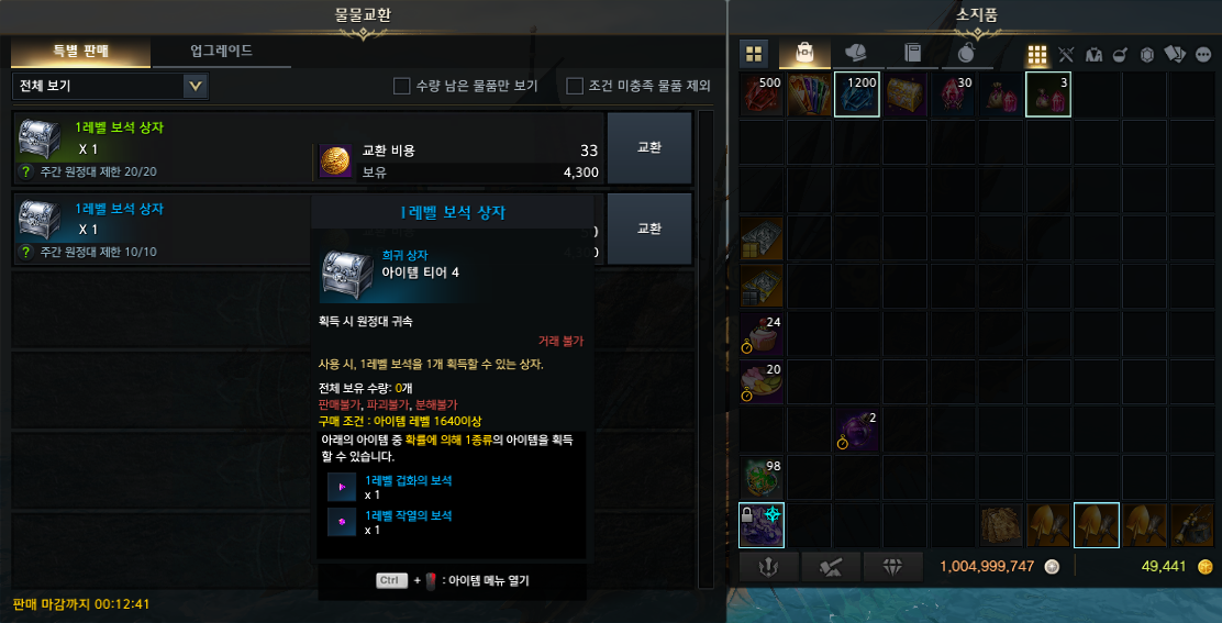 - 4티어 1레벨 보석상자 10개(3레벨 보석 1개, 1레벨 보석 1개)