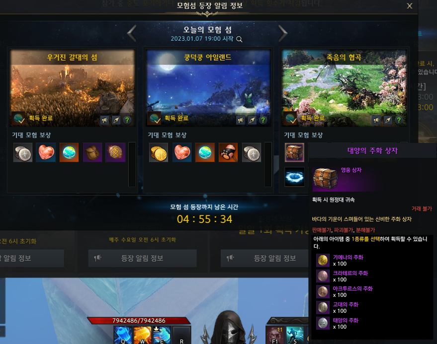 매일 등장하는 모험섬 중 "대양의 주화 상자" 보상을 주는 곳이 있다.