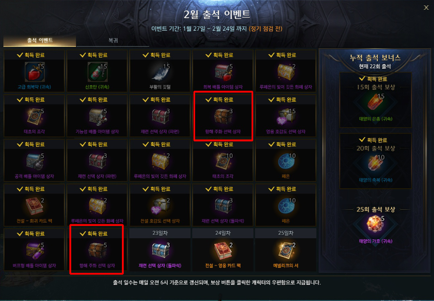 월 단위 출석 이벤트에서 항해 주화 선택 상자를 주는 경우가 있다.