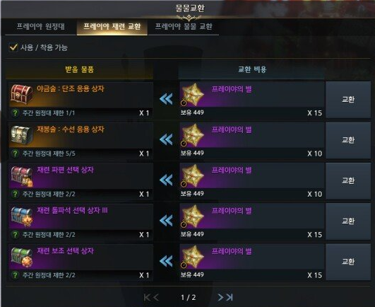 (단, 재련재료를 우선순위로 교환한 후 교환하는 것을 추천한다.)